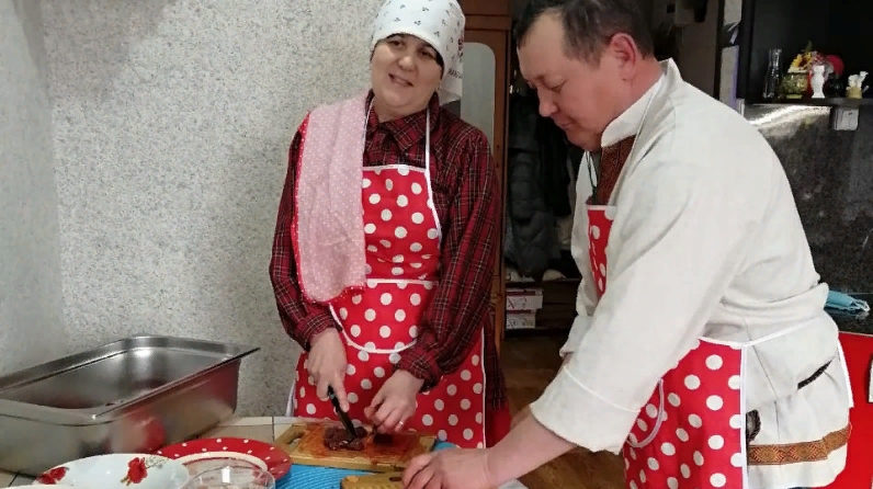 25 апрельдә, шимбә көнне, туры эфирда, шартан әзерләү сере белән Әккәрәй авыл мәдәният йорты директоры Лидия Квакова уртаклашты. Аның ярдәмчесе - ире Михаил, чөнки моның өчен күп ит кисәргә кирәк. Икәүләп алар ашказанын барлык кирәкле компонентлар белән тутырып, духовкада пешерделәр.