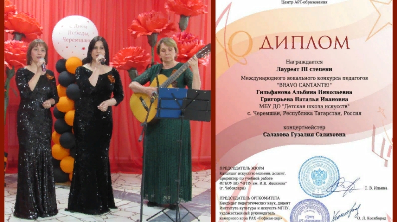 Балалар сәнгать мәктәбе укытучыларын «BRAVO CANTANTE» педагогларның Халыкара вокаль конкурсында 3 нче дәрәҗә лауреат булуы белән котлыйбыз.