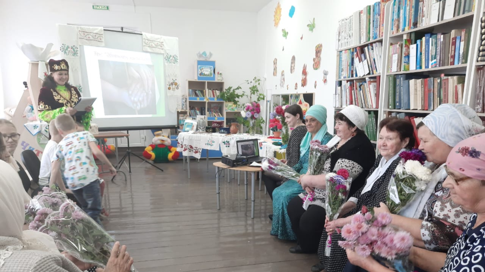 Үзәк балалар китапханәсе хезмәткәрләре Өлкәннәр көненә багышланган бәйрәм кичәсе үткәрделәр. Чарага чакырылган әбиләр һәм оныклар татар халкының мәдәни традицияләре турында әңгәмә тыңладылар. Әңгәмә слайд-презентация һәм әлеге темага багышланган китапларга күзәтү белән үрелеп барды. Барлык катнашучылар да кызыклы уеннарда һәм конкурсларда актив катнаштылар. Чара бәйрәм табыны артында һәм тантана сәбәпчеләренә чәчәк бәйләмнәре тапшыру белән тәмамланды.