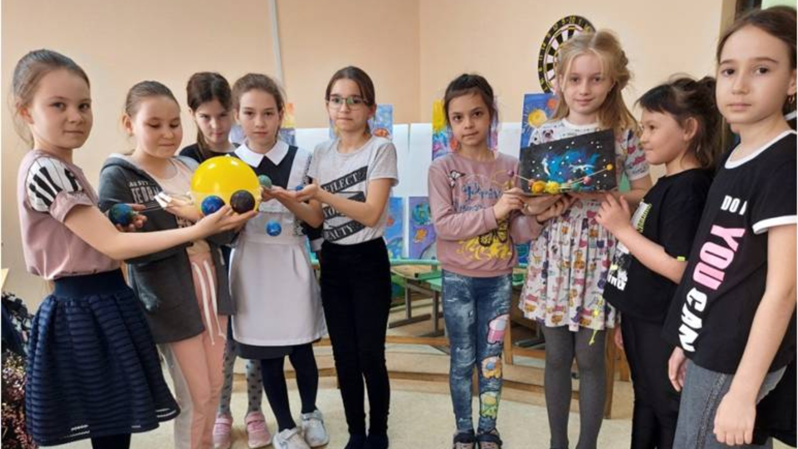 - укучылар "Космос кичә, бүген һәм иртәгә" дигән тематик дәрес үткәрделәр , укучылар космик казанышлар турында кызыклы фактлар белделәр, тема буенча рәсемнәр һәм эшләнмәләр ясадылар.