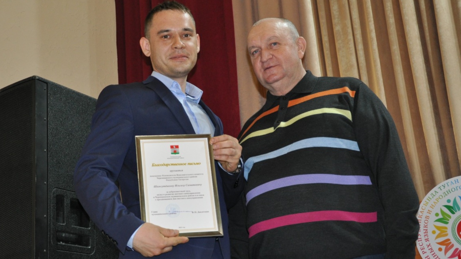 Җирле үзидарә органнары эшчәнлегенең нәтиҗәлелеген күтәрүдәге, җирле әһәмияттәге мәсьәләләрне хәл итүдәге казанышлары, күпьеллык намуслы хезмәтләре өчен, Чирмешән муниципаль районы башкарма комитеты җитәкчесенең икътисад мәсьәләләре буенча урынбасары Марат Хәбибулла улы Әһлиуллинга һәм Лашман авыл җирлеге башкарма комитеты җитәкчесе урынбасары Рокия Вахит кызы Гатауллинага “Татарстан Республикасы Муниципаль берәмлекләре Советы” Ассоциациясенең Мактау грамотасы тапшырылды.