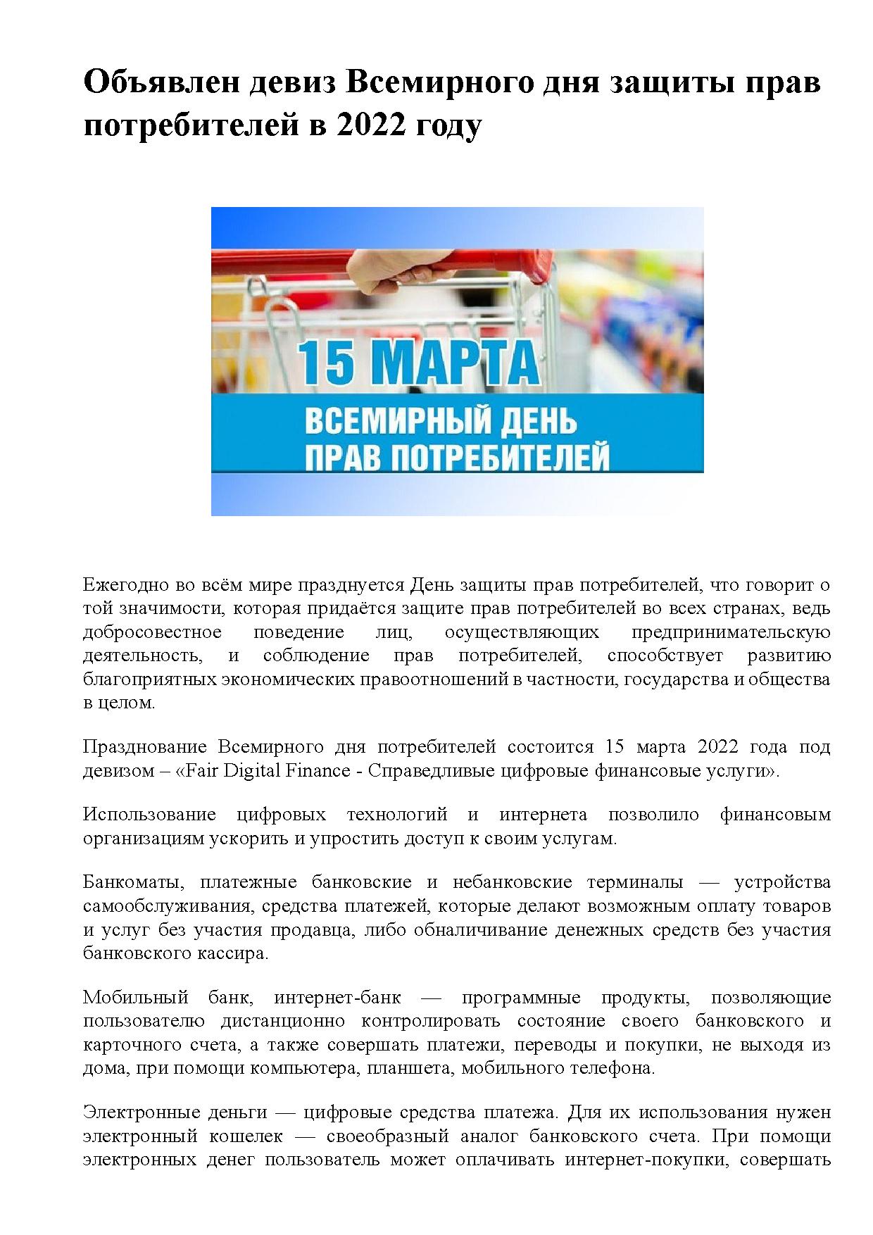 2022 елда Бөтендөнья кулланучылар хокукларын яклау көне девизы игълан ителде