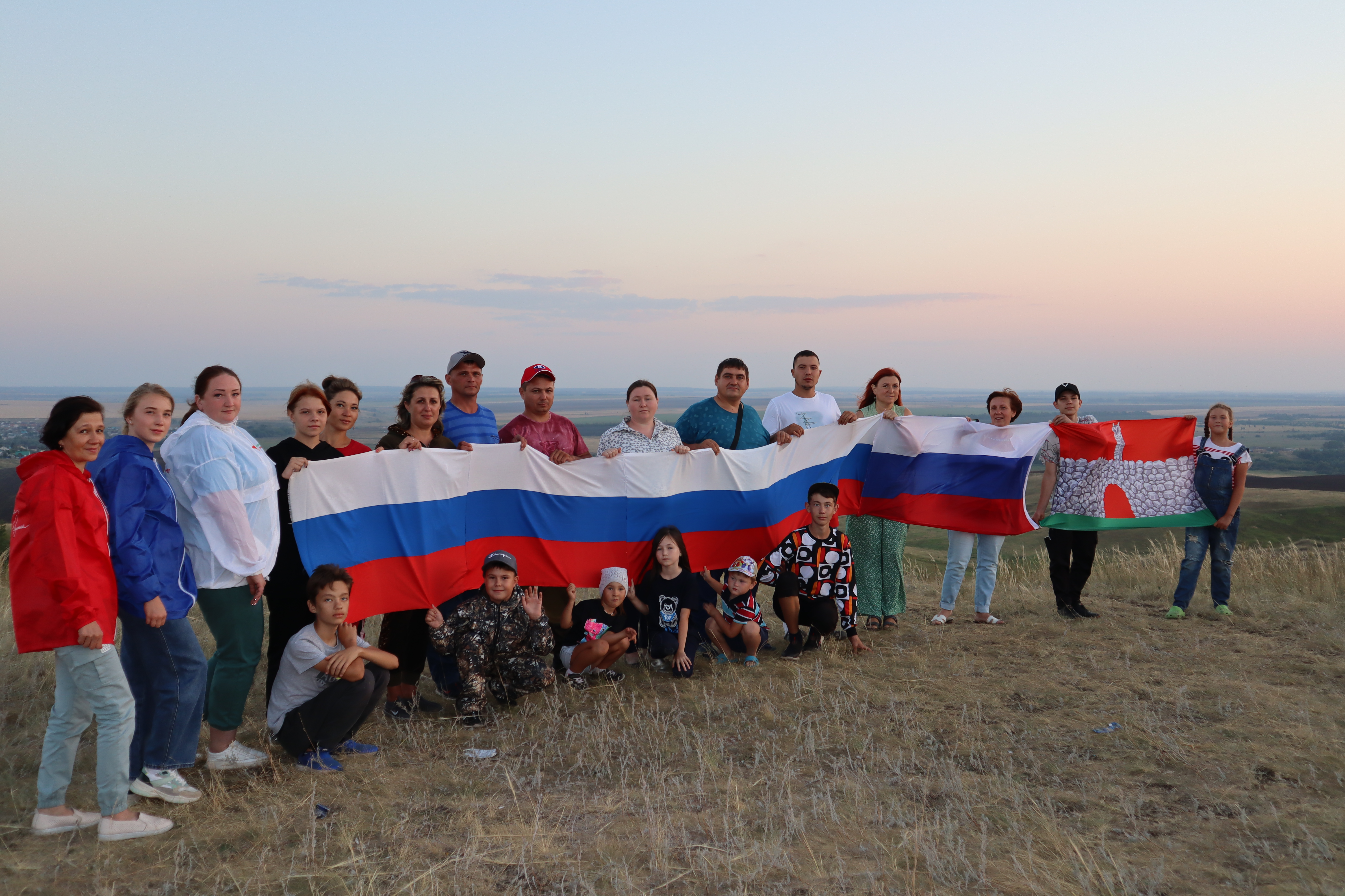 "Орион" яшьләр үзәге хезмәткәрләре һәм аларның активистлары Россия Федерациясенең Дәүләт флагы көнен бәйрәм итү уңаеннан Чирмешәннең иң биек ноктасына триколор белән күтәрелделәр һәм илебезнең төп символын ясадылар.