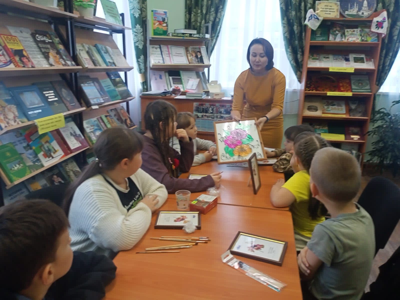 Балалар сәнгать мәктәбенең декоратив-гамәли сәнгать бүлеге укытучысы Шәфыйкова Рәмзия Ринат кызы пыялага рәсем ясау буенча мастер-класс үткәрде. Мастер-класста катнашучылар үз эшләнмәләрен бик теләп һәм кызыксынып ясадылар. Витражлы буяуның төп алымнарын үзләштергәннәр, буяуларны сайлап алырга өйрәнгәннәр, бу осталыкның серләрен белгәннәр.