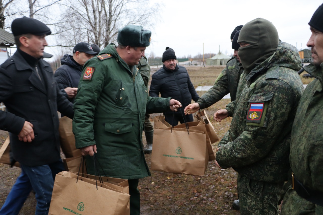 Мобилизацияләнгән якташларыбыз шәхси сорауларын монда килгән җитәкчеләргә юлладылар. Алар игътибарсыз калмаячак. Махсус операция кысаларында хәрби хезмәткә чакырылган чирмешәнлеләрне бүләкләр биреп тә сөендерделәр. Күчтәнәч пакетларга тушенка, дарулар, рация, төрле авыллар хатын-кызлары бәйләп җибәргән җылы оекбашлар һәм бияләйләр, шәхси гигиена әйберләре, башка кирәк-ярак куелган иде. Чирмешәнлеләр алып барган бавырсак, пироглар, каклаган каз, ипи, вак бәлеш өчен, кайгыртулары өчен, мобилизацияләнгән якташларыбыз рәхмәт әйтеп калдылар.