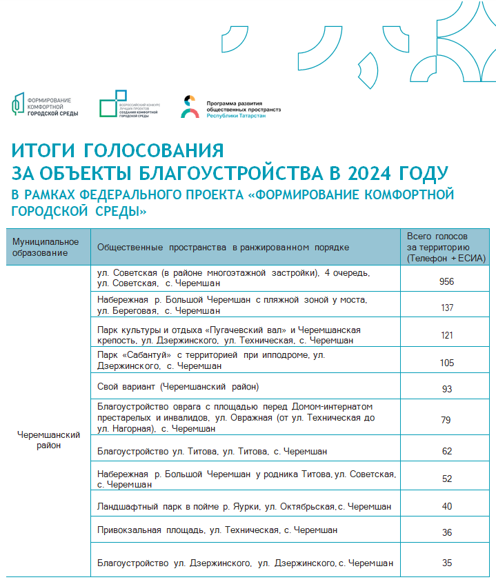 Төзекләндерү объектлары өчен тавыш бирү нәтиҗәләре