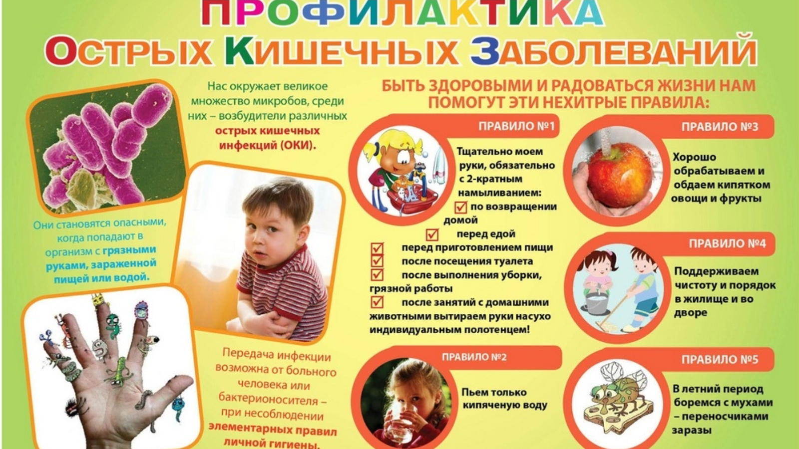 Чтобы не заболеть ОКИ, надо помнить основные правила профилактики и научить детей этим правилам.