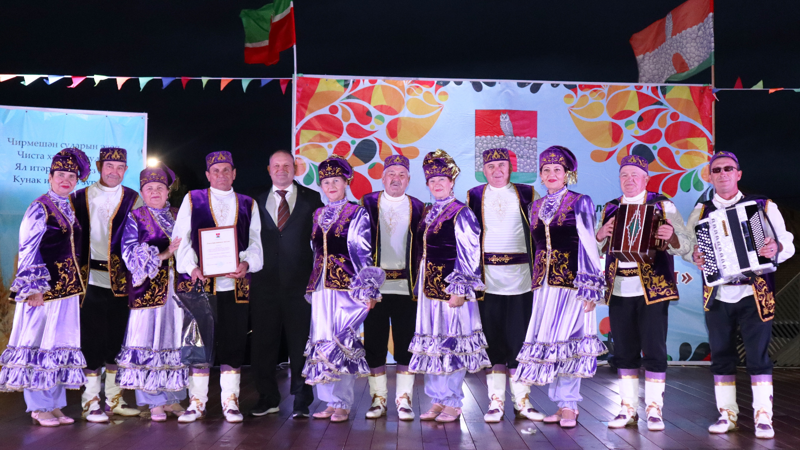Самара өлкәсенең Камышлы районы кунаклары "Ак каен" халык фольклор коллективы чыгыш ясады. Район башлыгы коллектив җитәкчесе Галимуллин Наил Нәбиулла улына Рәхмәт хаты тапшырды һәм коллективның барлык катнашучыларына ныклы сәламәтлек һәм алга таба иҗади уңышлар теләде.