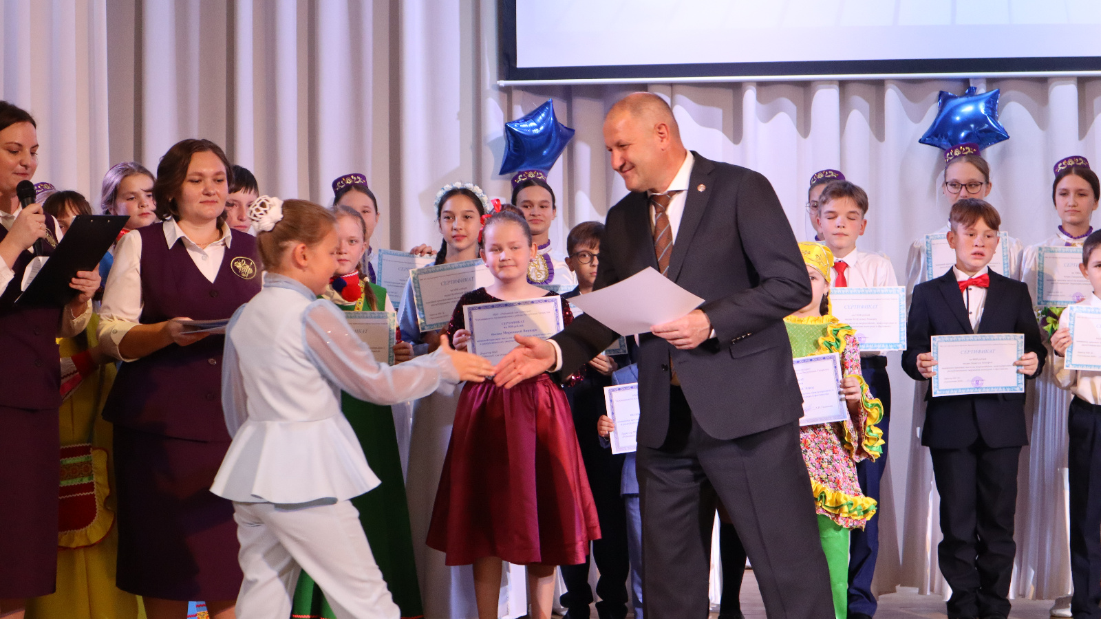 Район башлыгы республика конкурсларында, фестивальләрендә югары нәтиҗәләргә ирешкән 35 балага 4000 сумлык акчалата сертификатлар тапшырды. Шулай ук конкурслар һәм фестивальләр призерларын һәм лауреатларын әзерләгән 8 укытучы сертификатлар белән бүләкләнде.