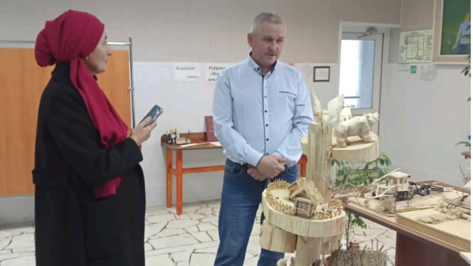 Корреспондентның төп максаты - музейның рәссамы Гамиров Сәлимҗан агачтан ясаган эшләр белән танышу. Сәлимҗан Галимҗан улы әңгәмә барышында үзенең кызыклы һәм шул ук вакытта иҗат эшләре турында сөйләде.