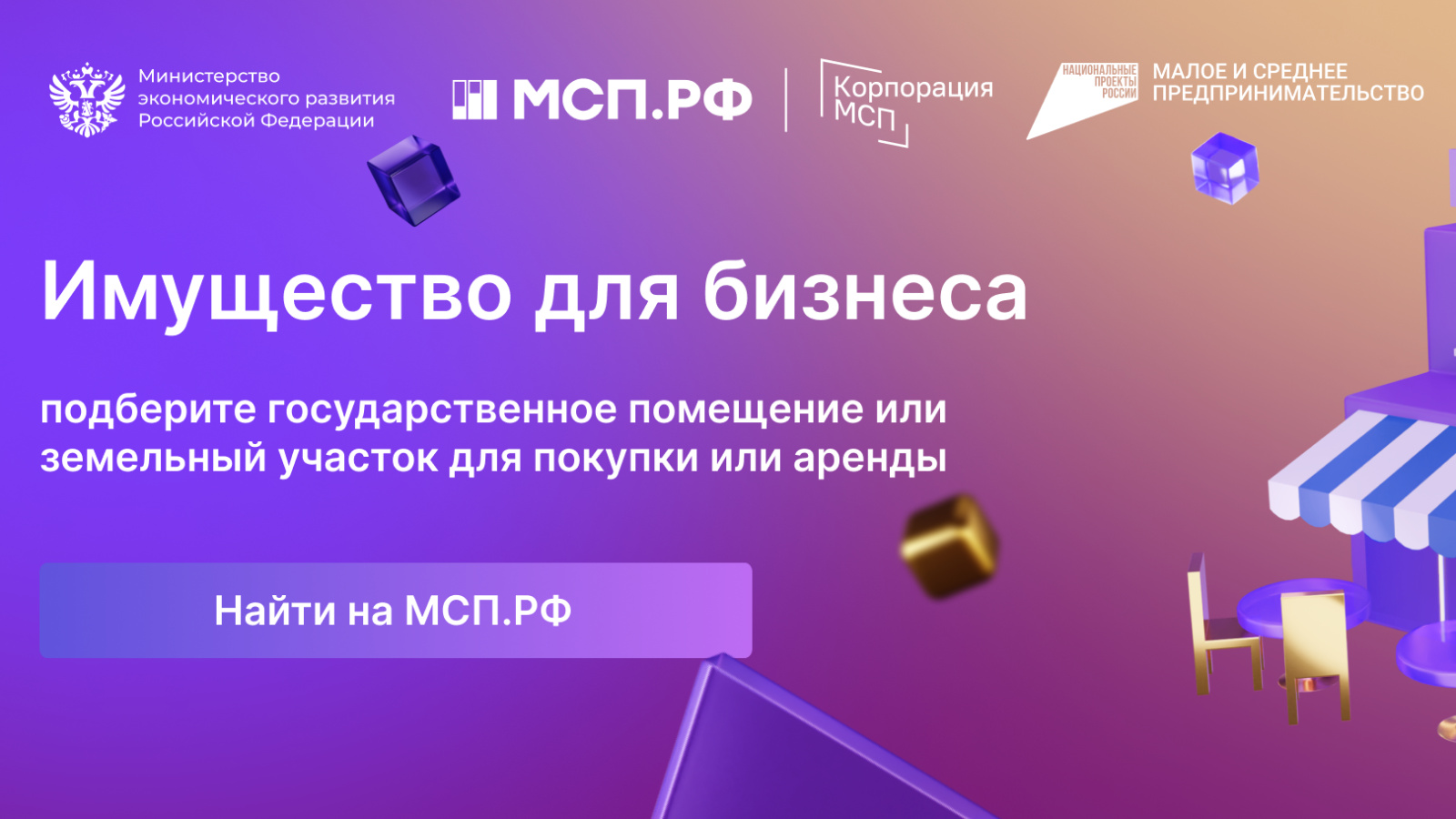 Имущественная поддержка субъектов МСП и самозанятых граждан. Авторизуйтесь на сервисе «Имущество для бизнеса», чтобы подробнее узнать о мерах поддержки. https://clck.ru/3836xD