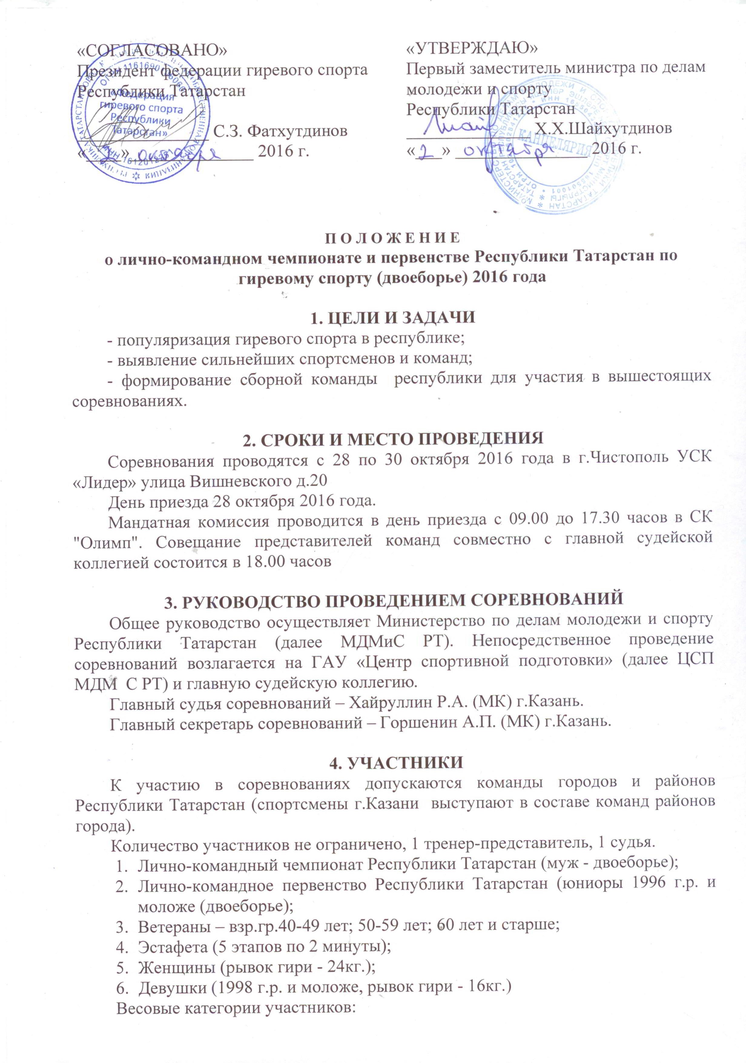 С 28 по 30 октября 2016 года в г. Чистополь пройдет лично-командный чемпионат и первенство Республики Татарстан по гиревому спорту (двоеборье) 2016 год.